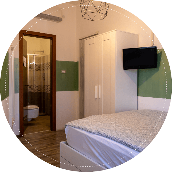 Tutte le nostre camere sono dotate di bagno privato, box doccia e ingresso indipendente. Su richiesta possiamo aggiungere anche un terzo letto e assicuriamo il cambio frequente della biancheria.